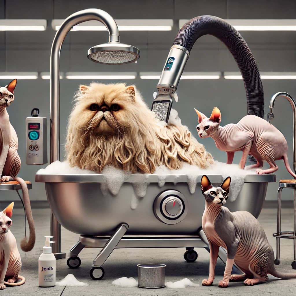 Whether it’s a fluffy Persian or a sleek Sphynx, our grooming station handles every breed with care and style. No more fuss, just pampered purrs as our feline friends indulge in bubble baths and fur styling fit for a catwalk!